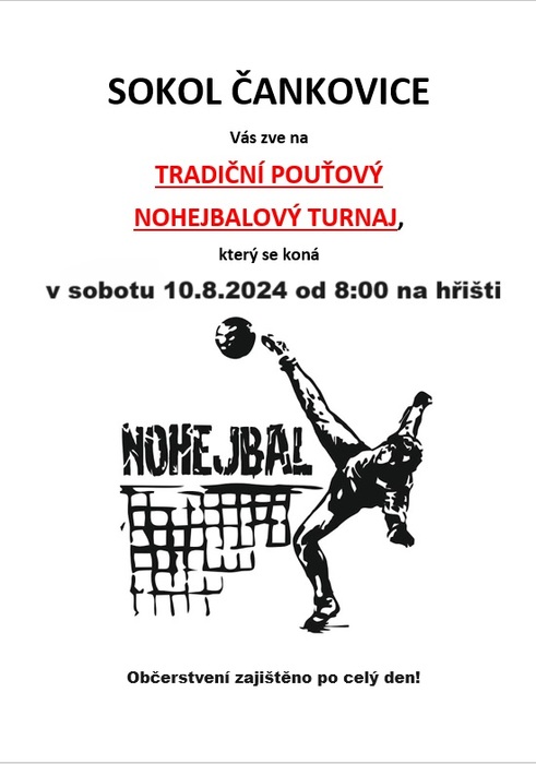 Od 8:00 hod odstartuje na hřišti NOHEJBALOVÝ TURNAJ.